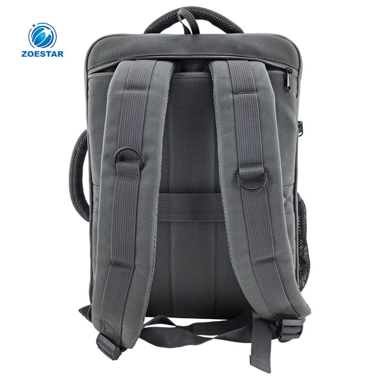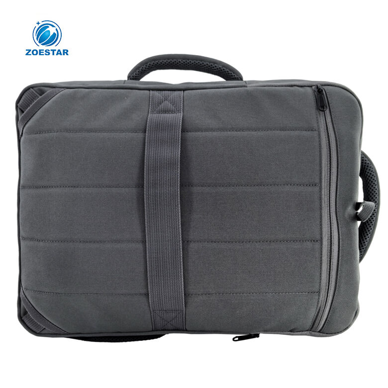 When not in use, the padded, detachable shoulder straps can be fully hidden inside the rear zip pocket, transforming the bag into a clean travel carry.