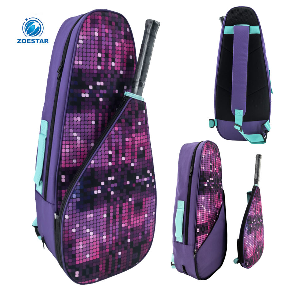 ① Abnehmbare vordere Schlägertasche | 2-in-1 Design Das vordere Schlägerfach passt ein Schläger und kann vollständig abgenommen werden , sodass er als leichter, separater Umhängetasche für den Schläger zum Training oder für kurze Ausflüge verwendet werden kann.