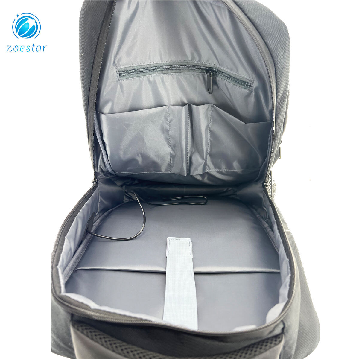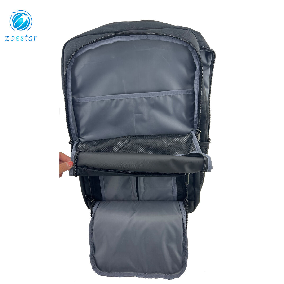 Paddet rygg med øvre hengeløkke. En bagasje reim- og glidelåslomme på baksiden av sekken.