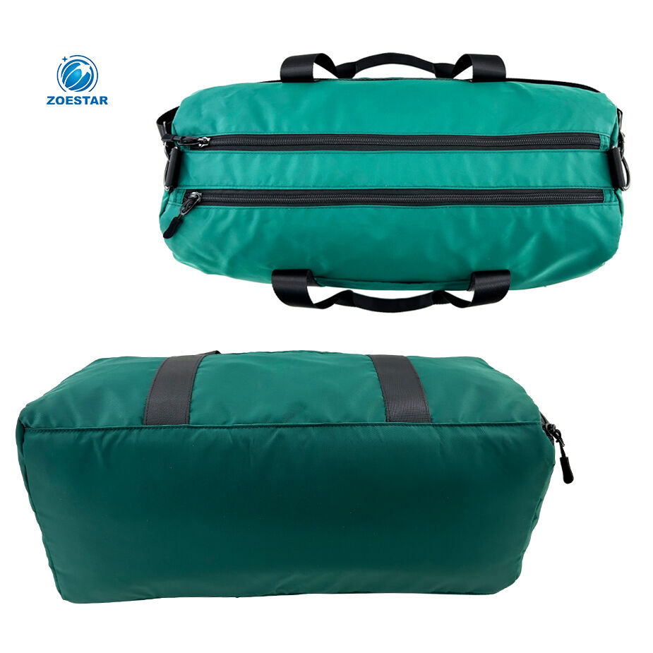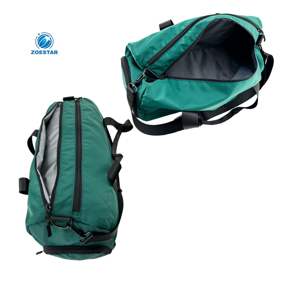 A separate large zippered pocket with PEVA lining is designed specifically for wet clothes, towels, or swimwear. The top-opening zipper ensures easy access while keeping moisture isolated.