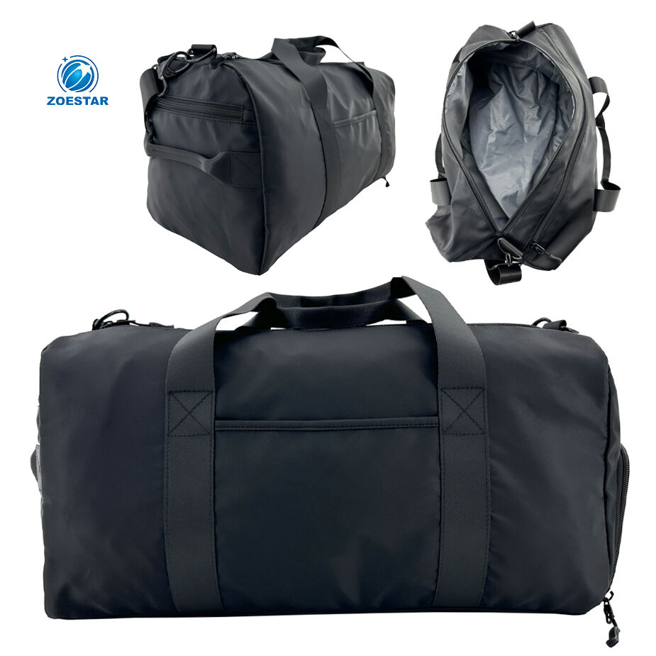 The bag includes a large-capacity main compartment with a top zipper opening, suitable for clothing and daily travel essentials. On the right side, a shoe compartment shares space with the main compartment, allowing efficient use of internal volume.