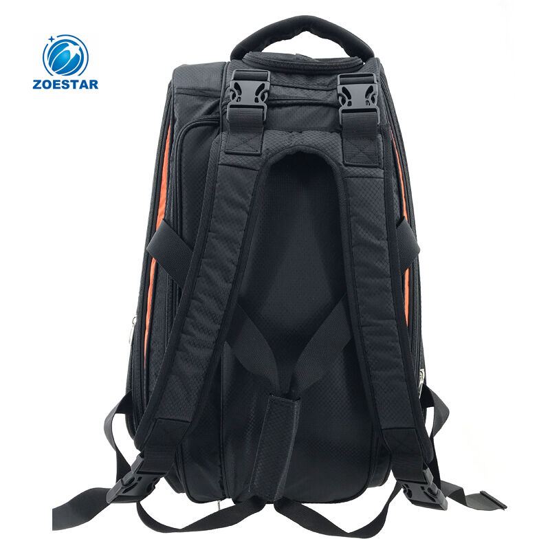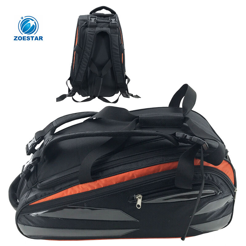 Secure Racket Storage: Additional zippered compartment lined with silver insulated fabric to safely store rackets.
