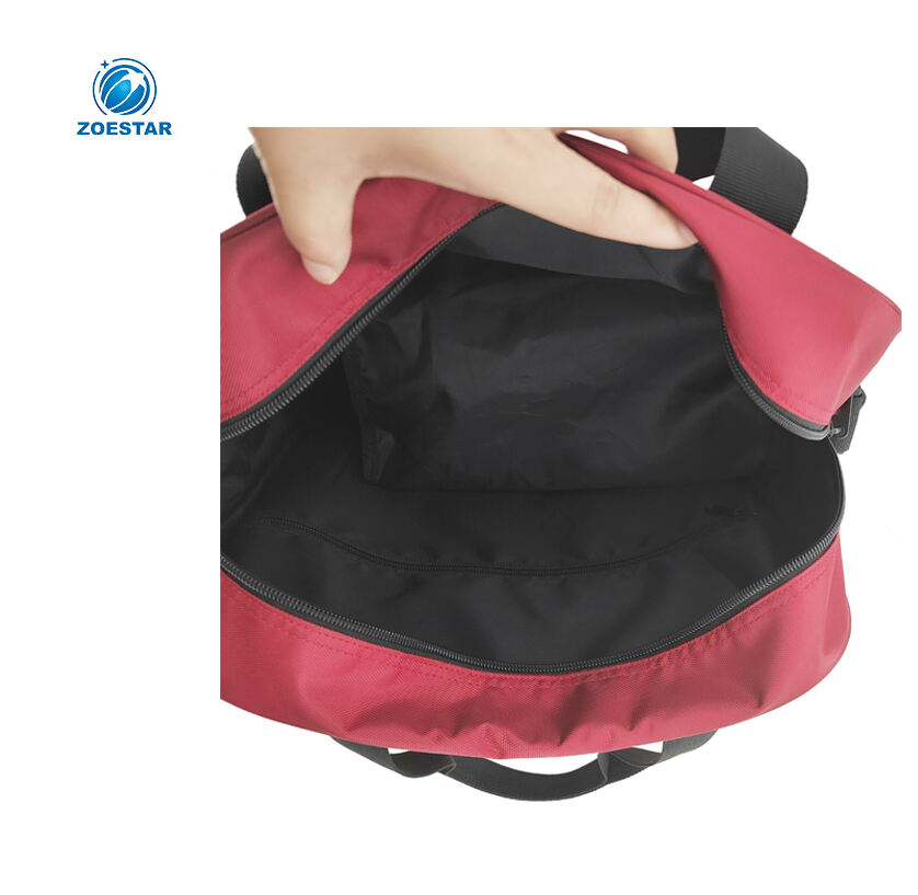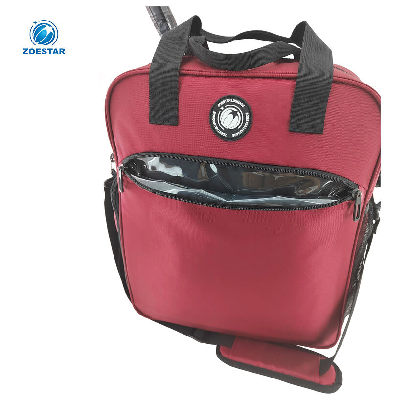 VENTILATED SHOE COMPARTMENT Side zippered shoe pocket with ventilation holes helps reduce odor. The shoe compartment shares space with the main compartment for efficient capacity use.